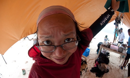 19 April 2009 Woke up at 5:45am – gee it’s overcast. By 6:30, while I was using nature’s toilet, the heavens opened. We all thought it was a good thing the rains didn’t happen at night! Equipped with raincoats, we continued shooting after breakfast. Secille and Choy found a dead brown booby tagged with bird [...]